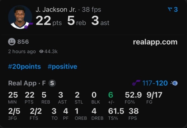 本场比赛,爵士新援小贾伦·杰克逊首秀弘扬可以,出场25分钟17投9中,三分5中2、罚球2中2拿到22分5篮板3助攻2抢断,正负值+6。